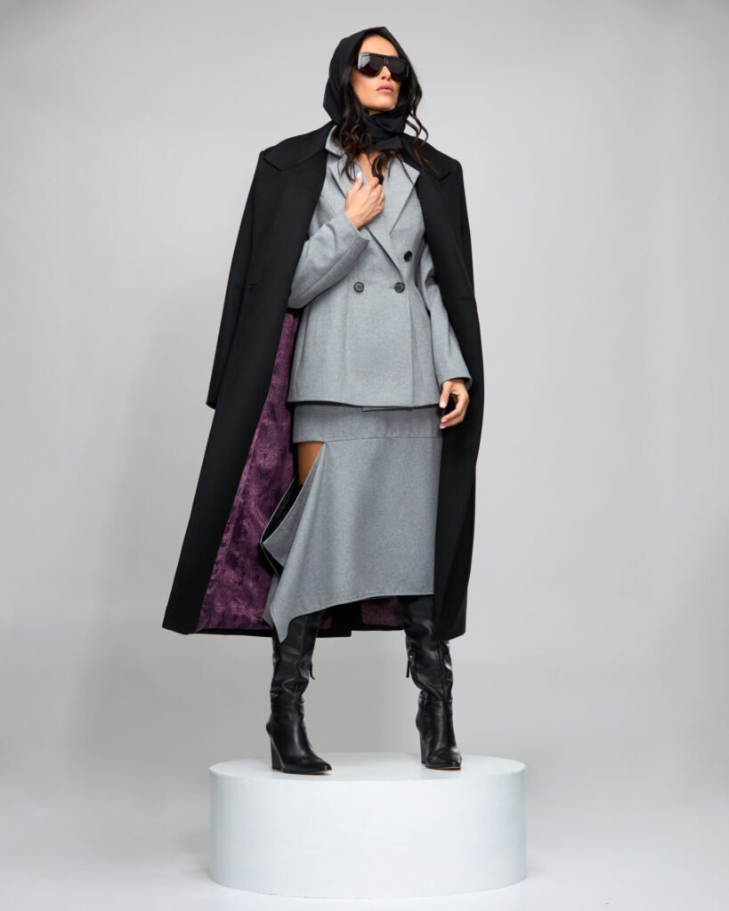 Ši kolekcija – viena techniškai sudėtingiausių. Konstrukcijos reikalavo daug pastangų, iššūkių netrūko, bet rezultatas džiugina net mane pačią. Išskirtiniai siluetai, pabrėžiantys moters figūrą, aukštos kokybės audiniai, kruopščiai parinktos detalės – visa tai bendrą vaizdą daro išskirtinį. Fotosesija perteikia tik dalį kolekcijos – viso už jos slypinčio darbo čia dar nematyti.