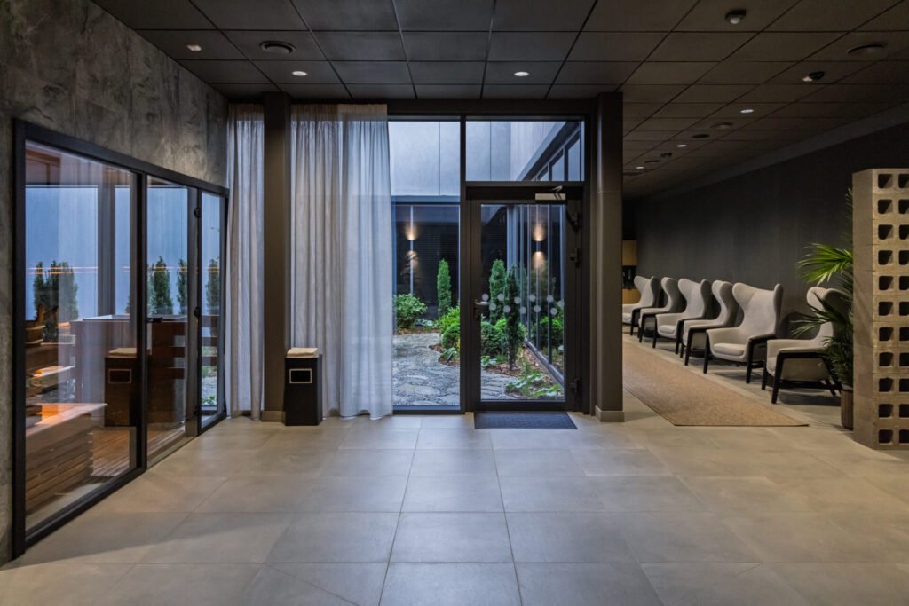 „Po vienu stogu – begalė veiklų, į kurias gali įsilieti visi šeimos nariai, draugai, ir šitaip stiprinti bendrystės jausmą. Padelis, tenisas, atskiroje sporto salėje – jogos, aerobikos, kineziterapijos užsiėmimai. O kur dar SPA zona, masažai, ledo vonia, hiperbarinė deguonies kamera, garinė ir suomiška pirtys, plataus spektro šeimos klinika. Veikia ir restoranas, siūlantis ne tik įprastus puryčius ir vakarienes, bet ir meniu sveikuoliams, – pasakoja R.Paleičikaitė-Polujanskienė.