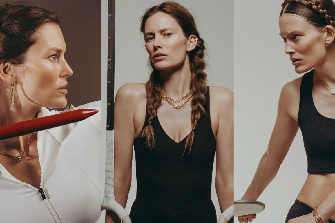 Fotografijose modelis Charlott Cordes ne tik vilki išskirtiniais sportiniais apdarais, bet ir dabinasi originaliais juvelyrikos dirbiniais.