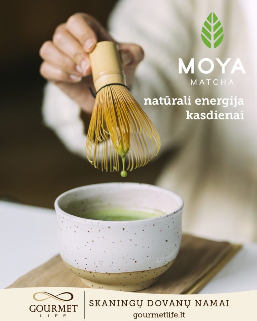 „Moya Matcha“ – ryškios spalvos, kreminės tekstūros, aukščiausios kokybės mačia arbata iš Uji regiono, Japonijos, kurią atstovauja „Gourmet life“ parduotuvė. Jos ieškokite parduotuvėse Vilniuje arba internetu: gourmetlife.lt